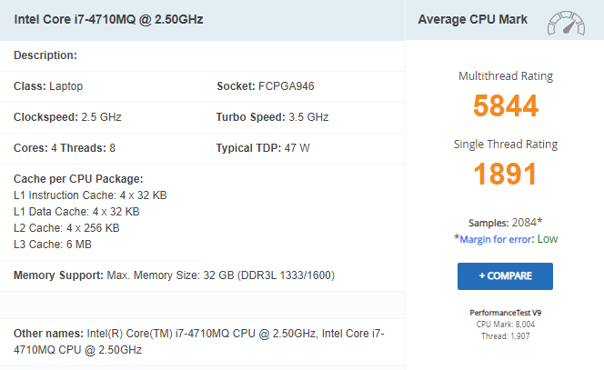 عملکرد و پردازنده Intel Core i7-4710MQ در لپ تاپ لنوو W541
